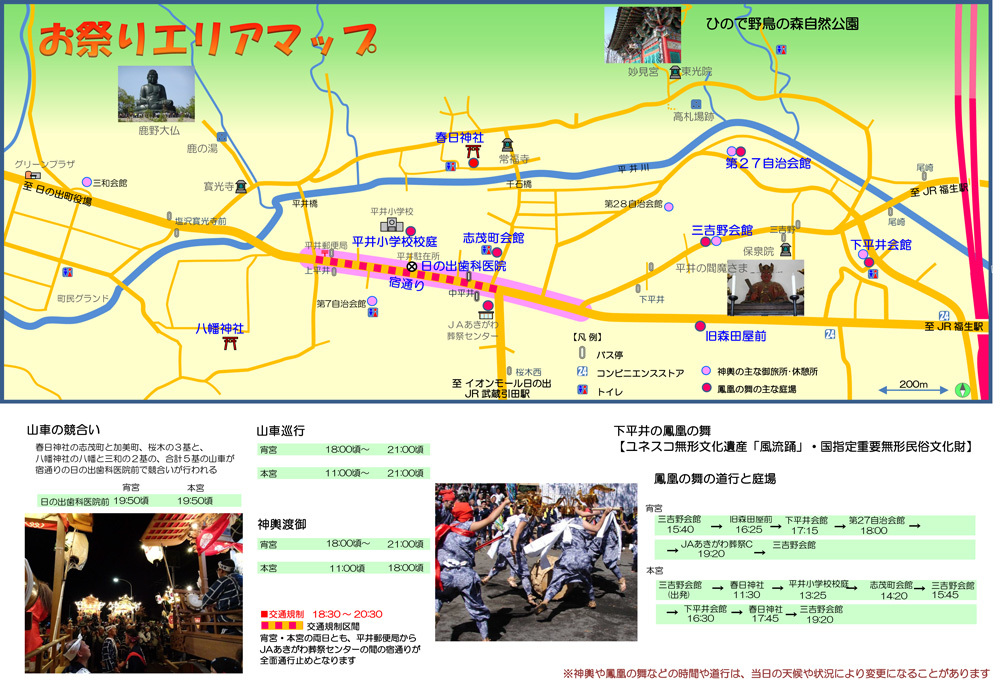 平井のお祭りの日に春日神社奉納演技と各庭場で演技 平成18年に指定