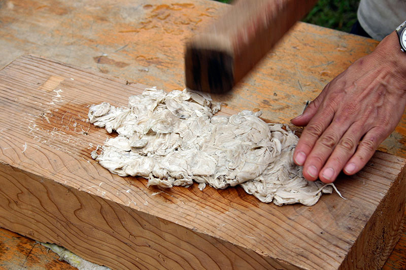 紙の原料づくり(コウゾから紙に使う繊維を取り出す)