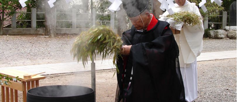 御神徳;猿田彦が天孫降臨の道案内を申しあげたことから、道案内・交通安全・旅の安全、夫婦和合、悪霊を防ぐ等人間の迷いを救い、健康家内安全を守る導きの神として、昔から厚く信仰されてゐる。
