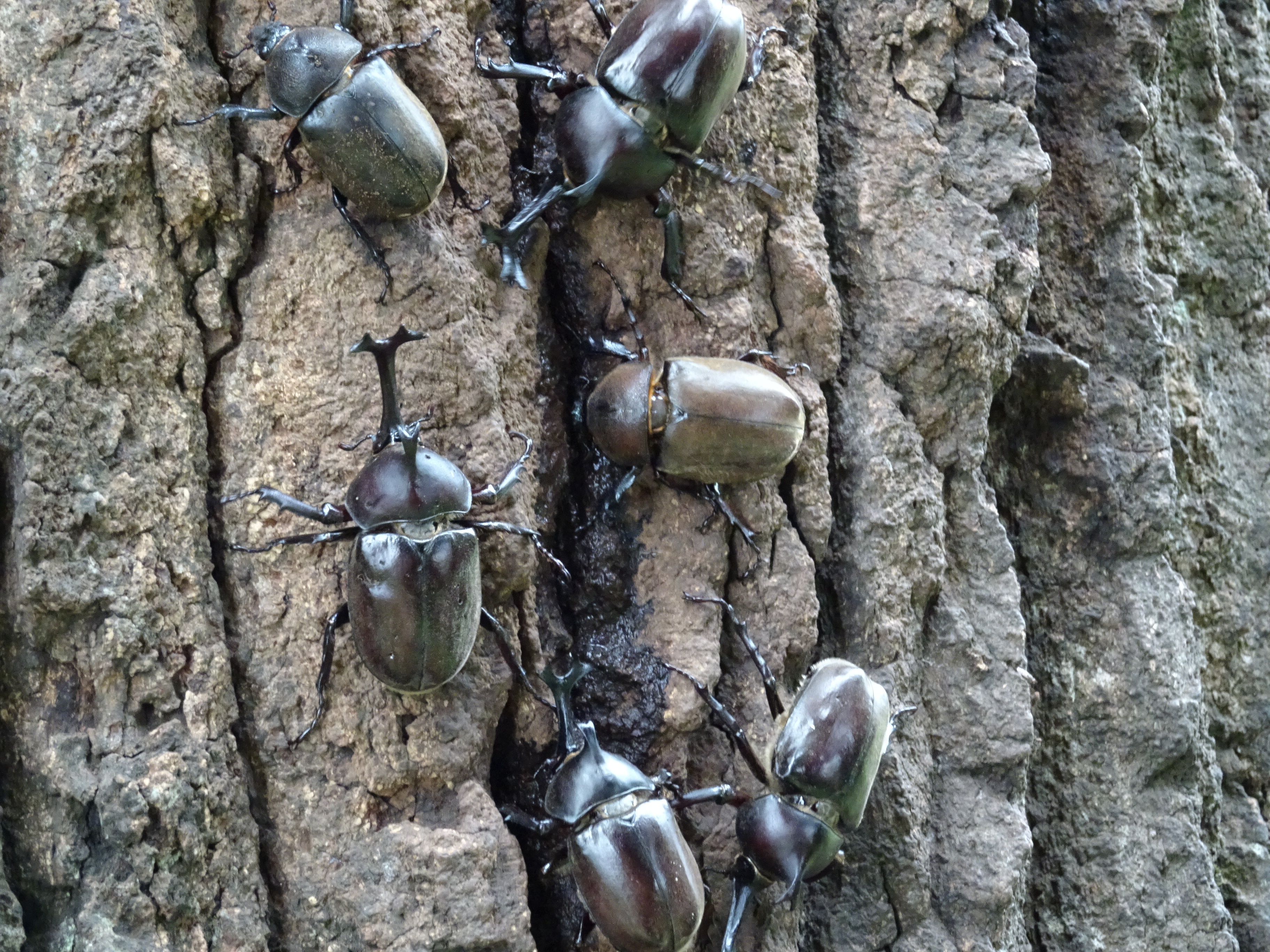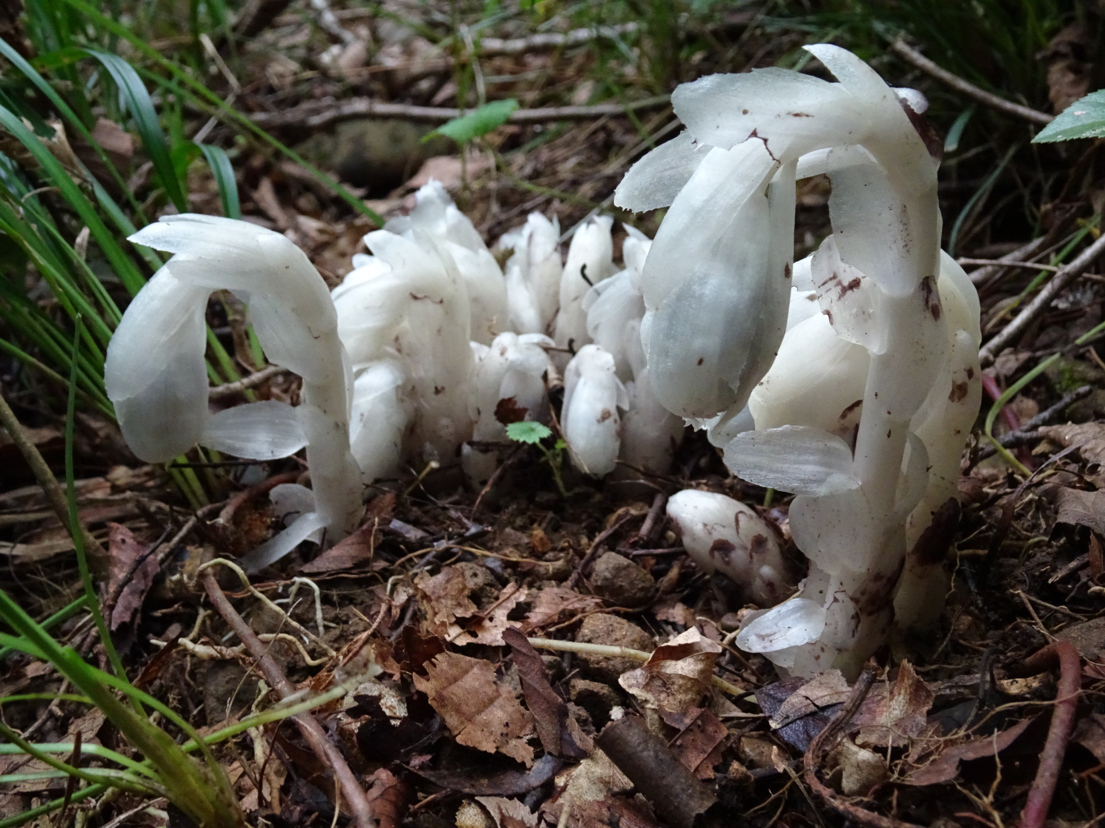 キノコに夢中 長雨が続き野鳥の森のキノコは豊作でした。広葉樹林から針葉樹林までと、環境の多様性もあり、キノコの種類も豊富のようです。