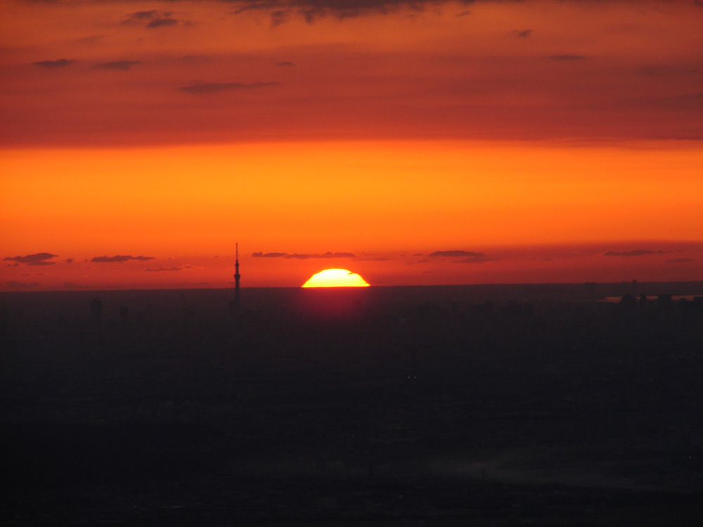 日の出山は多摩の山々や関東平野が一望でき、澄んだ日にはスカイツリー、都心のビル群、丹沢山系、江の島、筑波山まで望める山で、四季を通じて登山が楽しめます。名前の由来は御岳山からみて初日の出が昇ので「日の出山」。