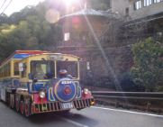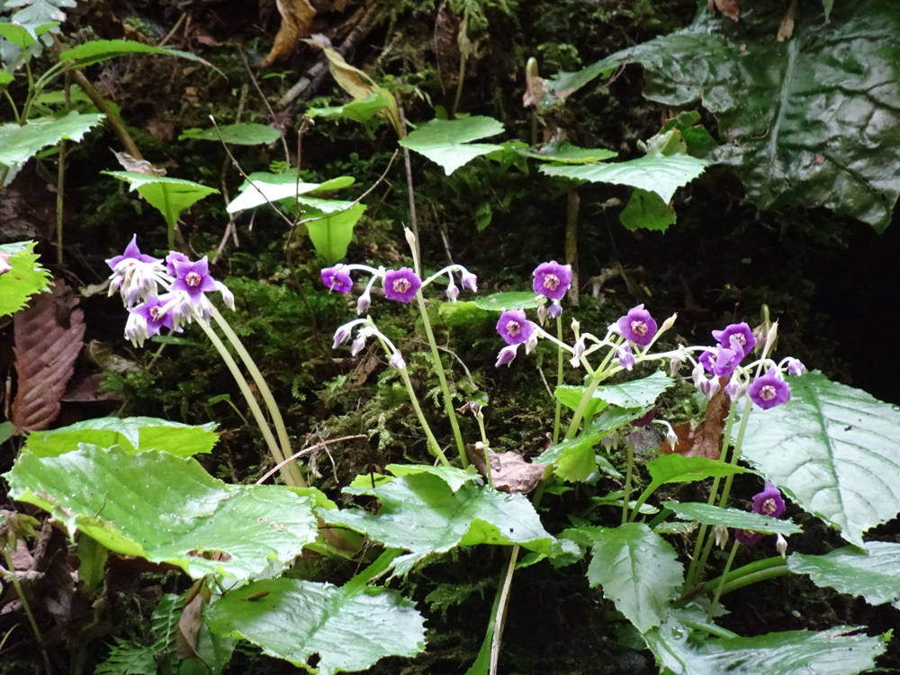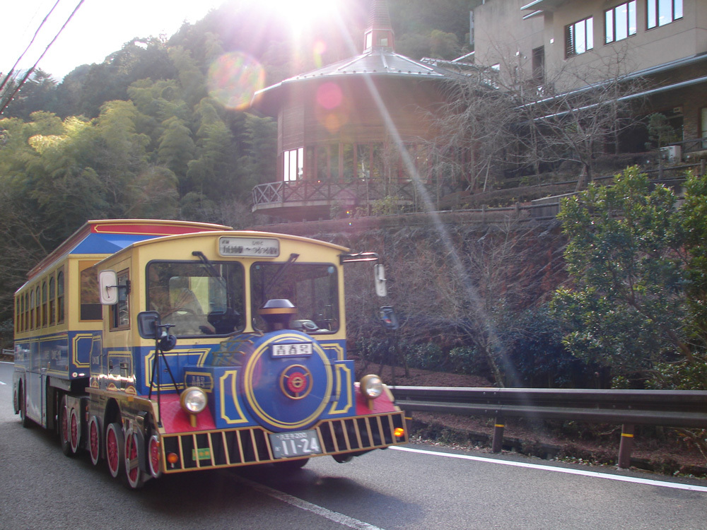 御岳山方向へは東雲山荘方向へ下ります。つるつる温泉へはあづま屋前の階段を下ります。東雲山荘向いのトイレ前からも行けます。三室山分岐の道標では直進、すぐ先の二股はすぐ下で合流します。クロモ上見晴台から直進階段を下山、若しくは直進は階段なので、手前の道標を右折・御岳山方向へ降り、御嶽神社参道に合流したら、道標を左折、つるつる温泉・クロモ岩に進みます。道が複雑に交わるクロモ岩を直進、右にカーブしたら、つるつる温泉の案内板を左折します。(直進すると平井川の源流、長い舗装道路になります)気がつかないうちに土橋を2カ所ぼど渡ると、日本武尊が顎をかけて関東平野を見渡したという「顎掛岩」。ここからは木々の間をつづら折れの道、時折は眺望が楽しめます。やがて不動堂の下で舗装道路に合流します。ここは滝本、御嶽神社参拝のために身を整えたところです。舗装道路を下り、三ツ沢で左折します。下りになれた体には登りが・・・。まもなく身も心も休まるつるつる温泉です。