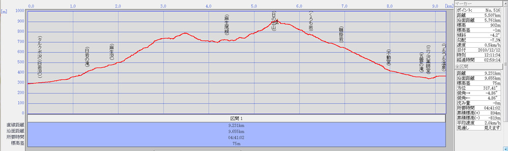 松尾バス停~日の出山山頂 ;約1時間50分