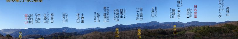 道標⑭⑮間の展望台から 富士山~奥多摩の山々~日の出山 (拡大します)