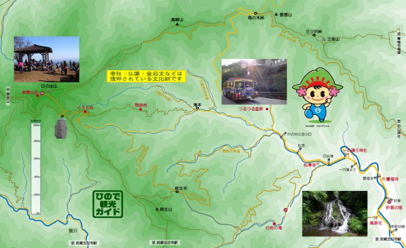 古の人々が御岳神社への詣でた歴史の道 日の出山山頂~つるつる温泉;約1時間20分