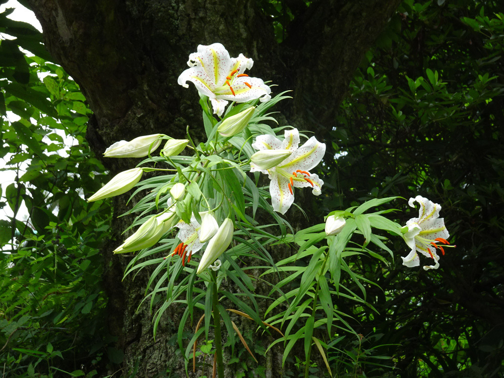 白岩滝バス停で橋を渡り沢沿いの道を進みます。15分ほどでトイレがあり、ここから「白岩の滝遊歩道」が始まります。タルクボ沢の中流には大小18の滝が連続しています。雨乞い橋を渡り遊歩道を登っていくと、末広がりに流れ落ちる最大の滝「雨乞ノ滝」が現れます。2段の滝で落差約20m。この滝の水を田畑にまくと雨が降ると伝えられ、近年でも日照りの年には近在の人たちが雨乞いに訪ねるという。雨乞ノ滝から少し登ったところに垂直に落ちる落差15mの「白岩ノ滝」があります。2つ合わせて「白岩の滝」ともいいます。連瀑が終わり、沢沿え道はタルクボ林道を横切り、さらに進むと麻生山林道(麻生平)に出会います。日の出山が突然正面に現れます。道標に注意し山道を登ります。最近伐採したので展望が良い山道です。麻生山に直登する道もでき、景観も良いので麻生山への寄り道をお薦めします。日の出山方向に下山すると、五日市からの道と合流し尾根道になります。途中、養沢からの道、旧道御嶽道を過ぎて、しばらくすると山城のような石組みで急勾配の階段になります。その上が頂上です。直下には宿泊施設「東雲山荘」と、トイレがあります。